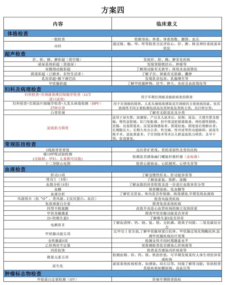 60岁以上女性:体检防“三高”,预防骨质疏松。高血压、高血糖、高血脂,三高是老年人常见心血管疾病症状。此外,还要谨防骨质疏松,建议定期做骨密度相关测试。