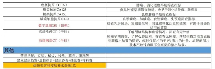 乳腺癌:20到39岁的女性进行乳房彩超检查;35-40岁以上的乳腺癌高危女性应该进行乳腺彩超/乳腺钼靶检查。